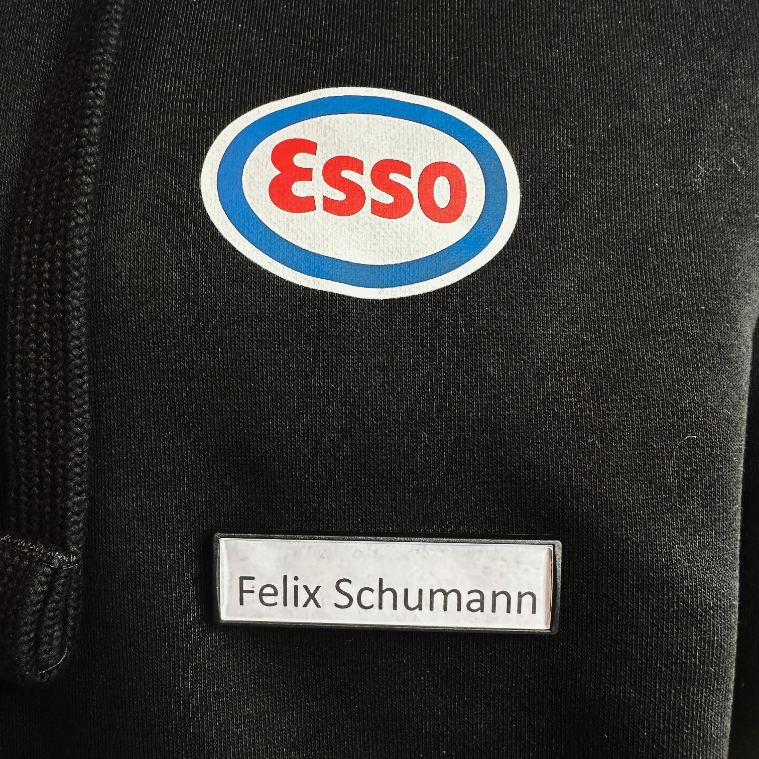 Magnetisches Namensschild zur Befestigung an Ihrer Esso Teambekeidung.
